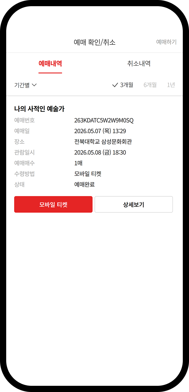 • 온라인 예매한 경우 상영 종료 후에도 현장 매표소에서 티켓 발권이 가능합니다.