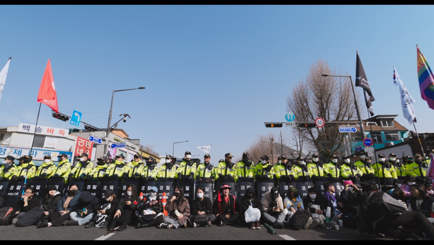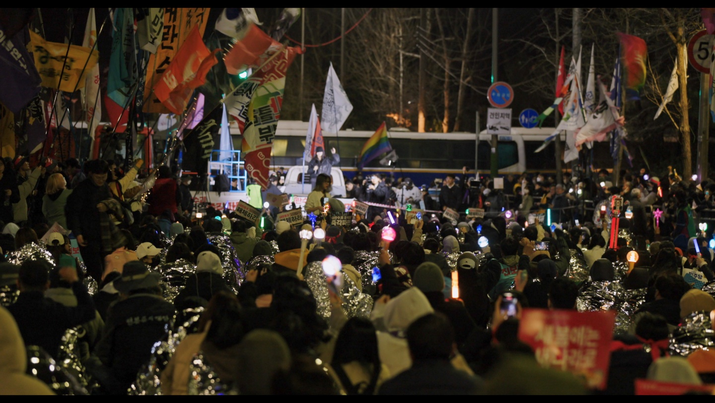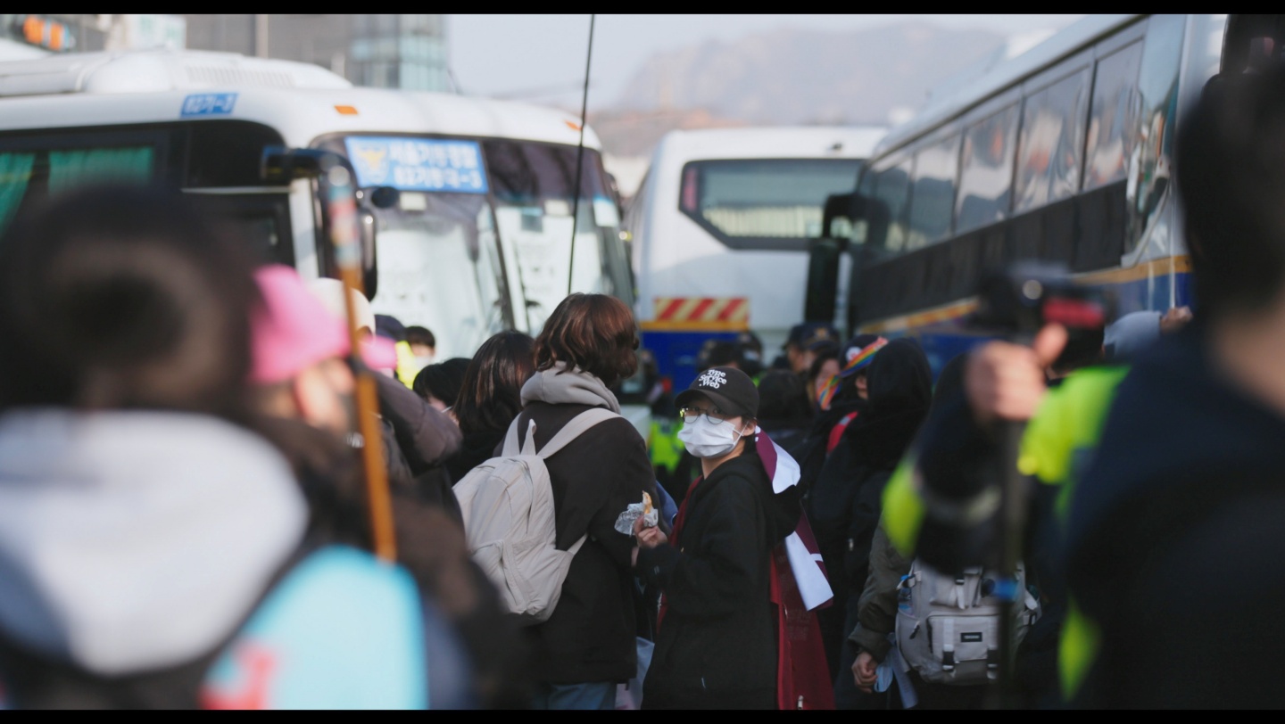 <어른 김장하>(2023)의 김현지 감독이 연출한 <남태령>은 이 같은 '내란 다큐멘터리' 중 하나로 분류될 수 있지만, 12월 3일이 아니라 이로부터 2주 이상 지난 12월 21일 오후부터 그다음 날 사이 벌어진 일에 초점을 맞춘다. 전봉준투쟁단의 '남태령 대첩'이라고 기록되는 이 사건은 누군가에게는 이제 희미하게 남아있을지도 모른다. 그 겨울에는 너무도 많은 사건이 발생했기에 개인적으로도 결국 전봉준투쟁단이 결국 용산까지 진출했고, 이 쾌거가 많은 시민들이 동참한 덕분이었다는 정도만 기억하고 있다.