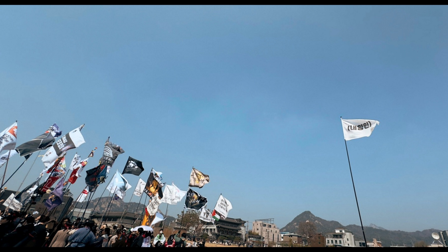 <남태령>은 이 희미한 기억을 똑똑하게 일깨워 주는 영화다. 그렇다고 <남태령>은 이 투쟁의 정치적 영향 따위를 분석하는 보고서가 아니다. 대신 여기에 참여했던 사람들의 후일담과 소셜 미디어에 담긴 기록, 연단에서 내뱉은 생생한 발언 등을 오밀조밀 엮어낸 일종의 태피스트리다. 또한 이 태피스트리에 새겨진 그림과 무늬는 세상이 앞으로 어떻게 나아갈지 알려주는 예언처럼 느껴진다.