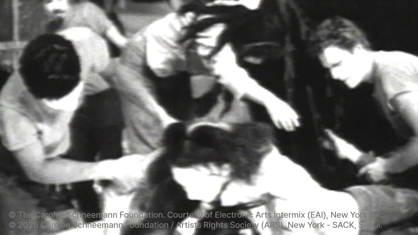 1967년 뉴욕의 마티니크 극장에서 열린 슈니먼의 공연을 16mm 카메라로 촬영한 소스로 만든 영화다. 슈니먼은 <스노우>를 통해 베트남 전쟁을 향한 분노와 슬픔을 표현하고 싶었다고 말한다. 참여한 예술가들 위로 <베트남-부스러기>의 영상이 투영되고, 겨울의 풍광과 베트남의 참혹한 장면들을 교차한다. 앞서 만들어진 <베트남-부스러기>는 슈니먼의 표현을 따르자면, "<스노우>의 심장이자 핵심"이며, 등장하는 움직임과 이미지는 '눈에 갇힌' 관객들이 궁극적으로는 알을 깨고 나오듯 현실을 깨닫고 나올 것임을 은유적으로 표현한 것이다. (김효정)