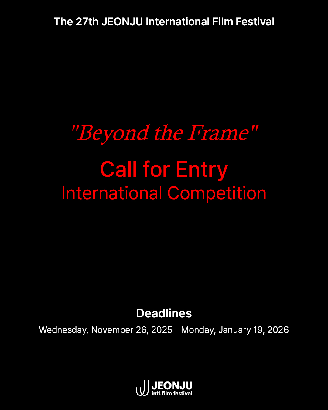Please check the details below for full eligibility requirements and submission guidelines. We can’t wait to discover your work at JEONJU IFF!